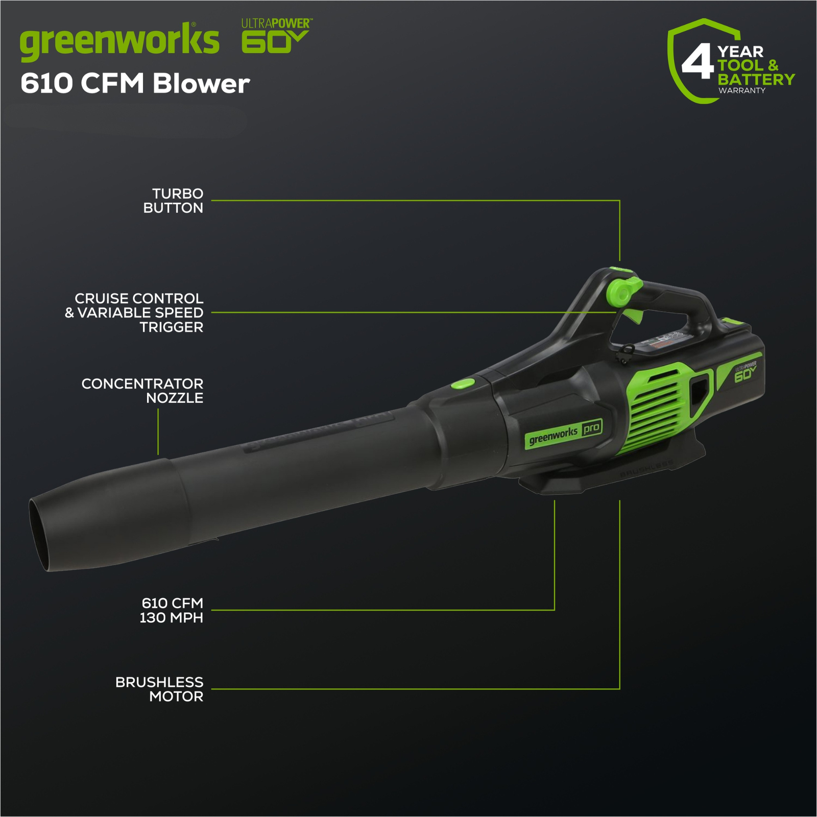 • What’s Included: One(1) 60V 17″ Cordless Battery Push Lawn Mower, One(1) One (1) 60V 13″ String Trimmer, One(1) 610CFM Blower, One(1) 60V 4.0Ah Battery and Charger