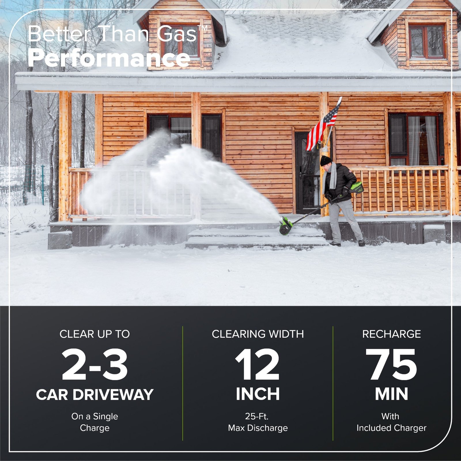 • Capacity: Up to 3 car driveways on a single charge