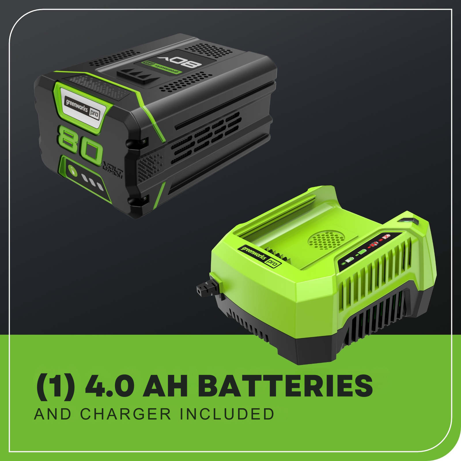 - What’s Included: (1) 80V 4.0Ah Batteries and Rapid Charger