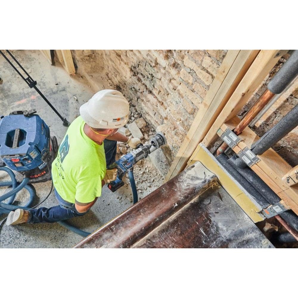 This Bosch D-handle Bulldog™ hammer delivering superior performance and an outstanding impact-to-weight ratio. The GBH18V-28DCN 18V Brushless 1-1/8 In. SDS-plus® Bulldog™ Rotary Hammer delivers 2.6 Ft.-Lbs. of impact energy, based on the industry standard of measurement agreed upon by the European Power Tool Association (EPTA). It weighs only 6.7 Lbs. (tool only, not including battery). The hammer’s brushless motor maximizes battery runtime for extended performance. The tool features a jobsite-proven D-handle design with soft-grip and is ideal for overhead, horizontal and downward drilling applications. The GBH18V-28DC is compatible with an optional GDE28D cordless dust-extraction unit (sold separately), delivering a self-contained dust solution for max mobility. It has KickBack Control, an anti-vibration system featuring a built-in counter balancer and a variable-speed trigger for accurate bit starting. It also has a HammerHook to hang the tool on a well-supported structure and robust housing for enhanced durability. This hammer features connectivity (module sold separately), providing a link to the free Bosch Toolbox app on a connected device to customize settings.