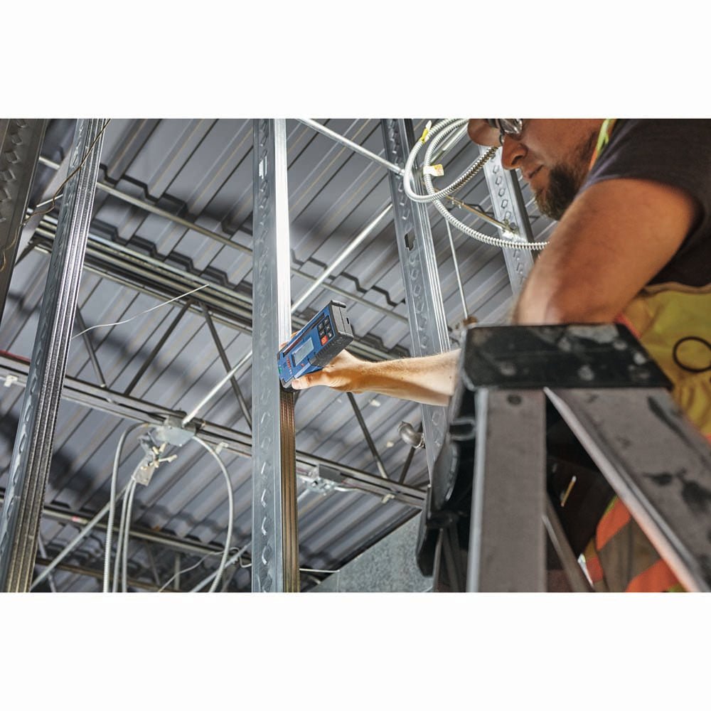 The Bosch LR40 Rotary Laser Receiver is designed to increase the GRL4000-80CH and GRL4000-80CHV rotary laser detection up to 2,000 Ft., with a dual-sided backlit LCD display for use in darker areas or outdoors on both sides of the receiver. It has built-in X and Y-axes buttons that allows for elevation and cut-and-fill calculations in both axes up to ±8.5°. The display illuminated large, easy-to-see indicators, including up/down arrows, center line, accuracy level, battery levels and audio signal. It also has LED indicators, to provide easy visual readout and simple operation. The oversized laser detection area helps find the laser beam faster, making it easier to start setting level. The receiver provides convenience features such as built-in magnets for secure attachment to metal surfaces, an adjustable audio indicator, intuitive six-button keypad, receiver vial, attachment hook and ergonomic soft grip.