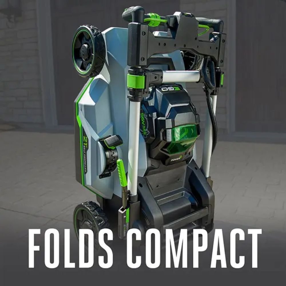 The EGO POWER+ 21″ Select Cut™ XP Self-Propelled Mower delivers 8.3 foot-pounds of torque that exceeds the power of gas without the noise, fuss, or fumes. The Select Cut™ Multi-Blade Cutting System is equipped with three interchangeable lower blades: the Mulching Blade, High Lift Bagging Blade, and Extended Runtime Blade. The Mulching Blade comes installed on the lawn mower and is ideal for weekly mulching, giving you the mulching quality expected from a high-end gas lawn mower. The High Lift Bagging Blade provides extra suction ideal for bagging, leaving your yard free of clippings. The Extended Runtime Blade provides an optimal balance of cut quality and runtime for all around performance. All three blades can be used interchangeably based on your desired cut. The Upper Blade is used in combination with the lower blade chosen to slice the grass into fine fragments, greatly enhancing cutting performance with all grass types. EGO Touch Drive™ self-propelled technology puts complete control of the self-propel system in the palm of your hands by using pressure to engage the system. Easily control the variable speed with a dial positioned at your fingertips for safe and convenient operation. The Select Cut™ XP cordless lawn mower harnesses the power of the industry’s most advanced 56V ARC Lithium™ batteries to deliver up to 75 minutes of runtime on a single charge with each included 7.5Ah battery—or get continuous runtime by simultaneously charging the second battery in just 60 minutes so you already have a battery ready. Three-in-one functionality delivers your choice of mulching, side discharge, or bagging your grass clippings; an easy-access two-bushel grass collection bag is included. This electric lawn mower includes bright LED lights for added visibility when mowing at dawn or dusk, and it folds for compact storage between cuts. Experience Power Beyond Belief™ with the EGO POWER+ 21″ Select Cut™ XP Self-Propelled Lawn Mower.