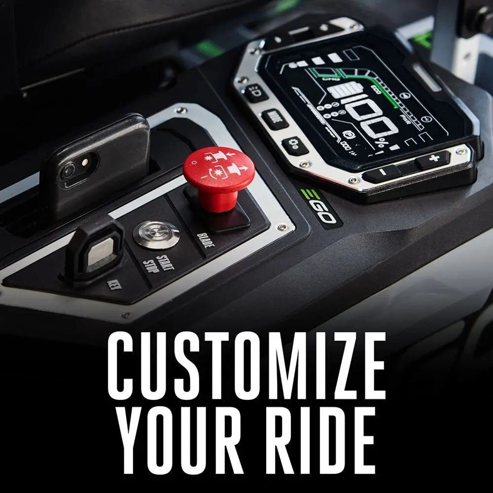 The EGO POWER+ 52” Z6 Zero Turn Riding Mower is a ZTR like nothing else out there. Featuring Peak Power™+ technology, it combines the power of up to 6 EGO 56V ARC Lithium™ Batteries – the same battery technology powering all EGO products, making it the World’s First Platform Compatible Rider. Engineered with 5 independent brushless motors to deliver 25 horsepower, equivalent to a gas engine, in cutting and driving power. Built with a 52” 10-gauge fabricated steel deck and reaching a top speed of 8 MPH, this new ZTR allows you to cover more ground, faster. Cut up to 4-acres on a single charge with six included EGO 12.0Ah 56V ARC Lithium™ batteries. Go even further by adding more batteries to cut 5, 6, 7 or as many acres as needed – unlike any other battery-powered ZTR in the market. The Industry’s Fastest Charger fully charges 6 x 12.0Ah in just 4 hours, up to 4x faster than competitors. The adjustable seat suspension guarantees a smooth ride. Customize the mowing experience with an LCD interface featuring 3 driving modes: Control, Standard, and Sport – that can be accessed with the simple touch of a finger. Premium features like LED lights, USB charging port and Bluetooth come standard to make the experience unlike any other ZTR. Built for durability – the mower, batteries and charger are all backed by a 5 year warranty. Experience zero-turn mowing like never before with the all-new EGO Power+ 52” Z6 Zero Turn Riding Mower – Power Like No Other.
