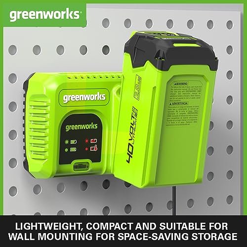 - COMPATIBLE WITH ALL GREENWORKS 40V BATTERIES – robust and reliable, this advanced battery charger is suitable for all Greenworks 40V batteries. Fully charge one 40V 2Ah battery in 30 minutes or one 40V 4Ah battery in 48 minutes