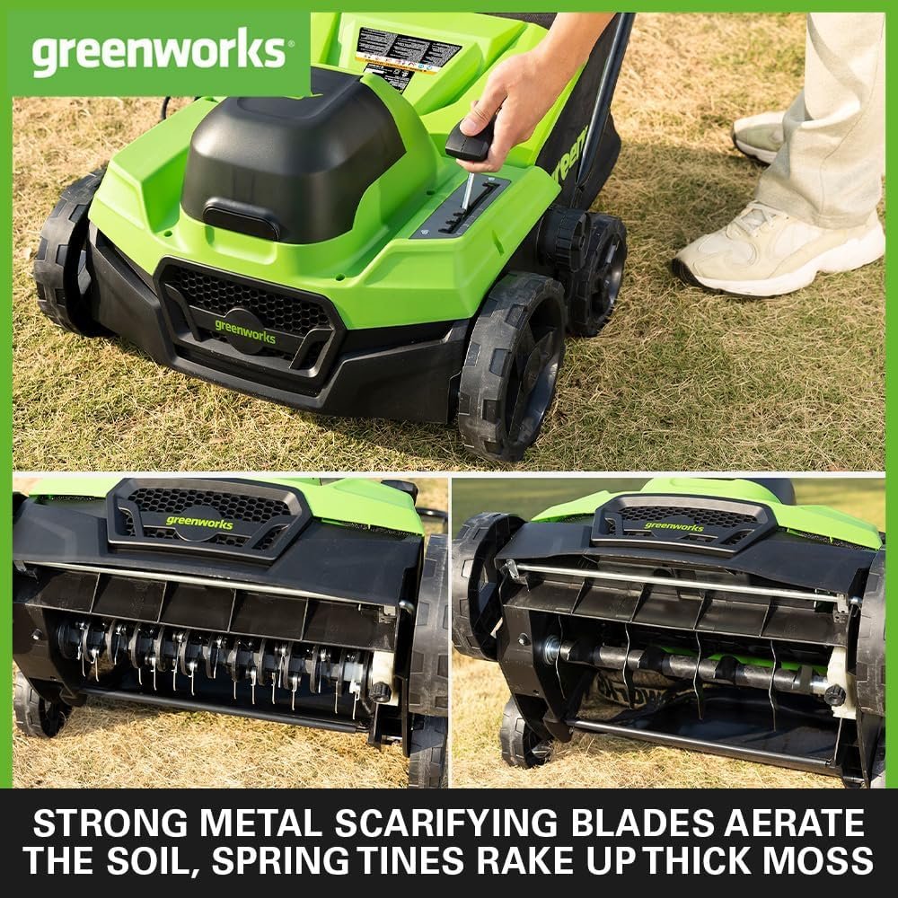 Details: Greenworks 40 V 2-in-1 cordless scarifier and aerator GD40SCII38