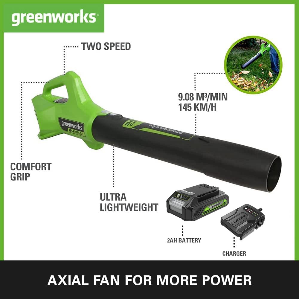 Greenworks – 24V Axial battery leaf blower without battery and charger.
