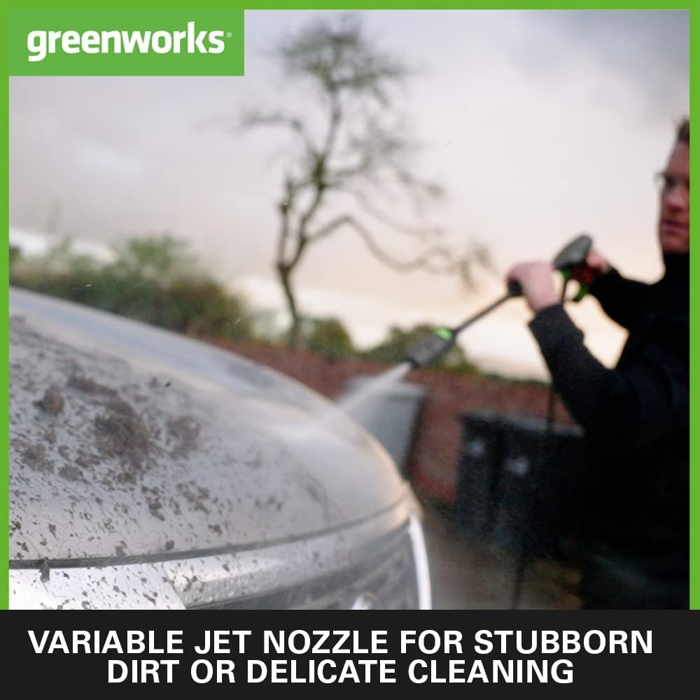 - VARIABLE SPRAY FAN-JET NOZZLE โ simply twist the nozzle, to choose a powerful narrow jet to shift stubborn dirt or a broad gentle fan for delicate surfacesโ