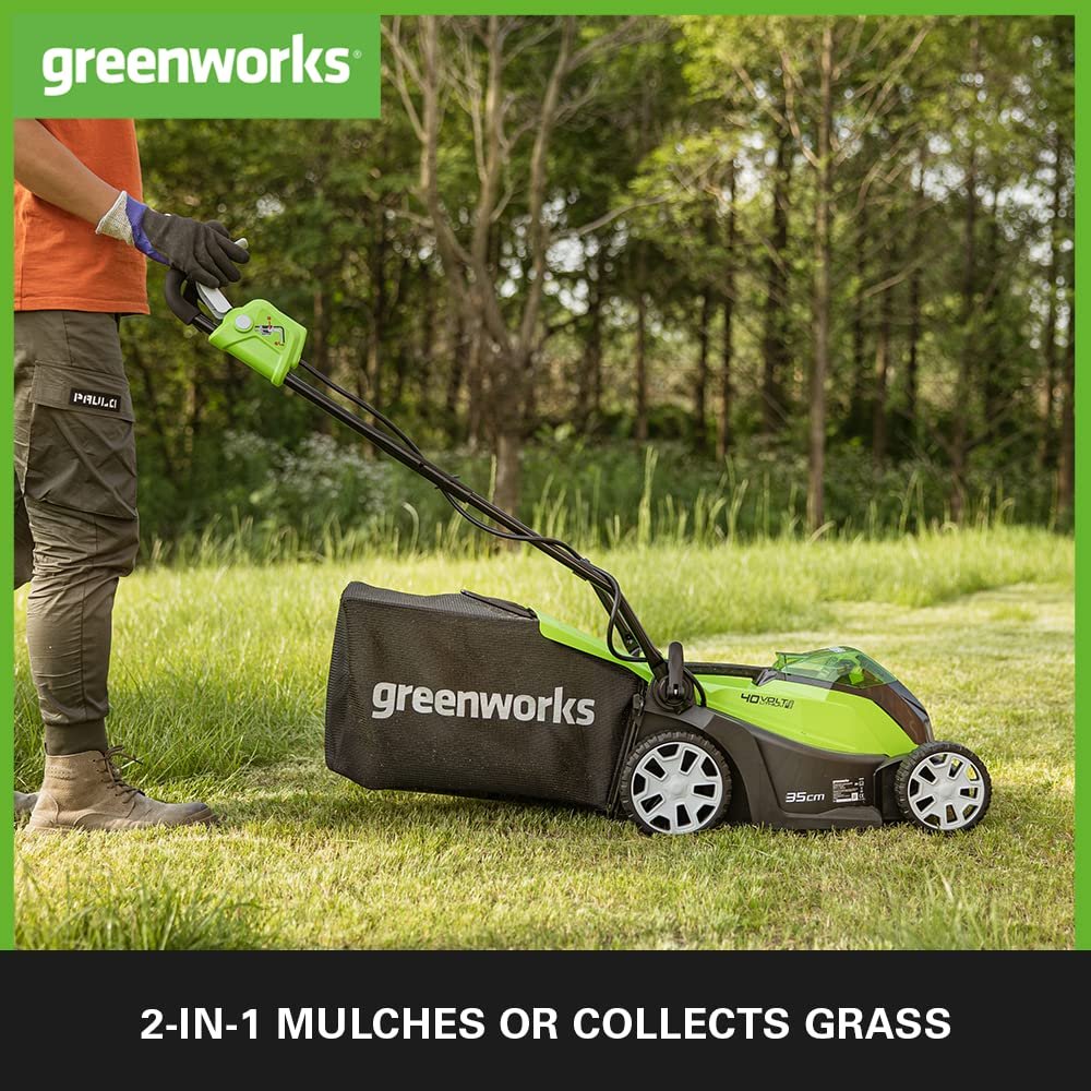 Greenworks G40LM35 Cordless Lawnmower for Lawns up to 400m², 35cm Cutting Width, 40L Bag WITHOUT 40V Battery & Charger, 3 Year Guarantee, Green