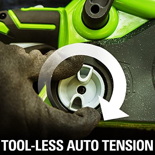 Cordless saw is equipped with a chain speed of 4 m/s and a 25 cm long blade and chain made of Oregon steel for fast work progress. The Greenworks chain saw can be tensioned effortlessly without special tools. Optimum chain tension is essential for perfect cutting results.