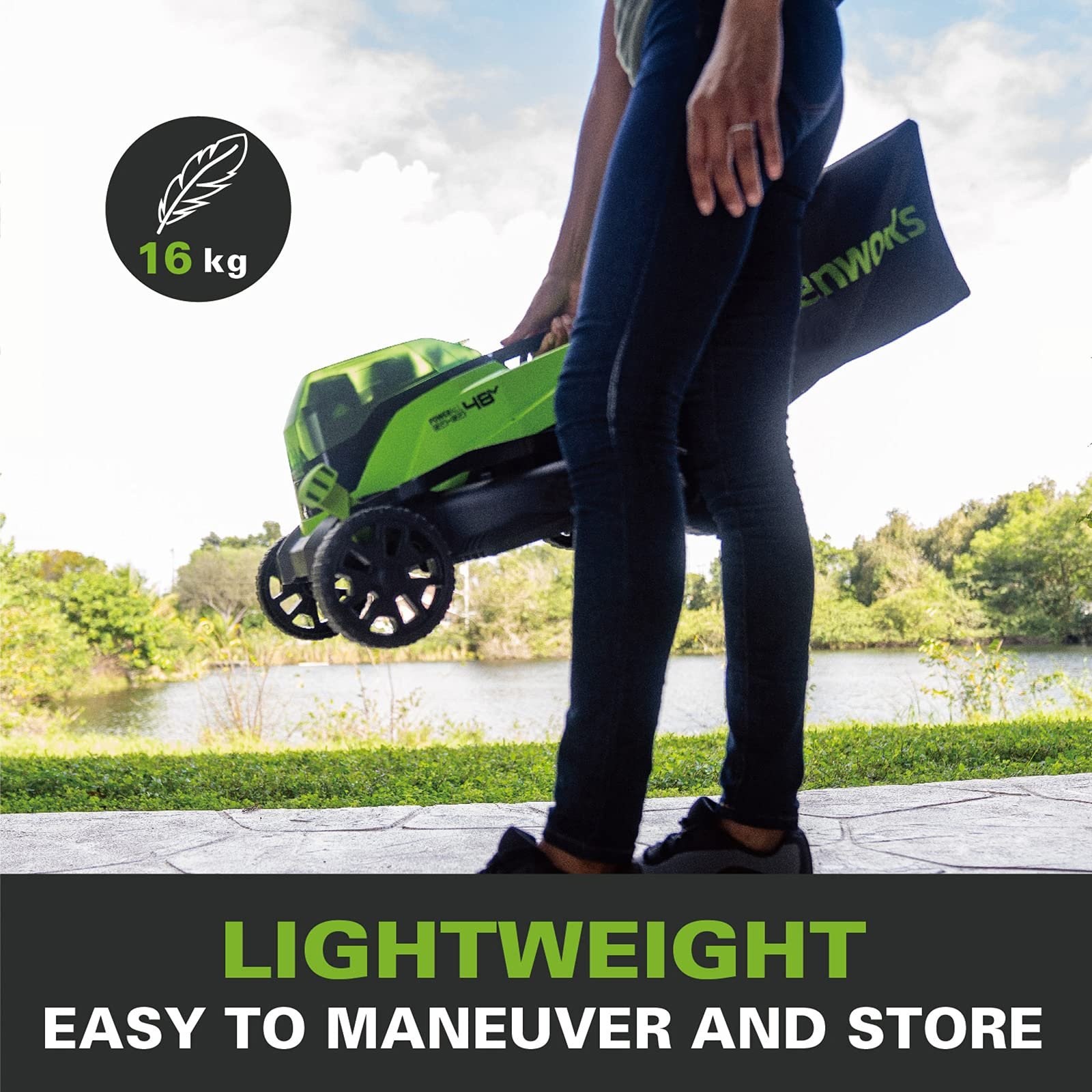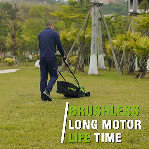 • PRACTICAL – our Greenworks cordless lawn mower with brushless motor is equipped with a 40L grass catcher capacity and can be easily stored to save space thanks to its retractable handle