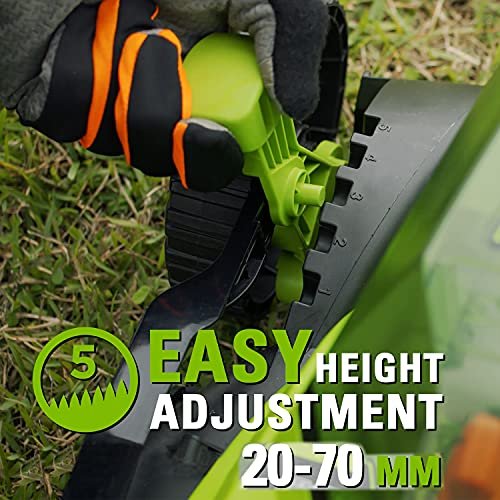 • FEATURES – the quiet mower helps you to effortlessly maintain a well-maintained lawn with its 5-way central cutting height adjustment from 20 to 70mm and a cutting width of 36cm