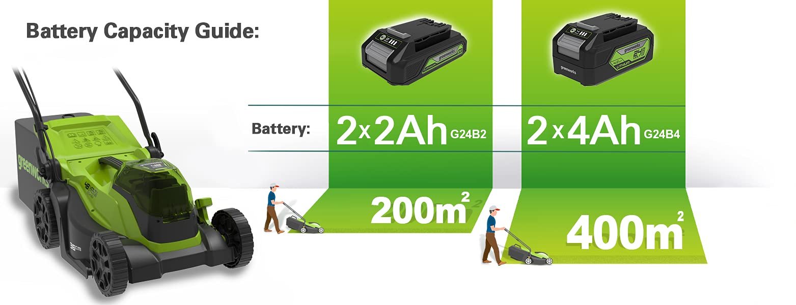 • ONE BATTERY FOR ALL – the Greenworks 24V batteries from 2Ah up to powerful 4Ah are versatile and compatible with many products from the house Greenworks in the field of garden and workshop