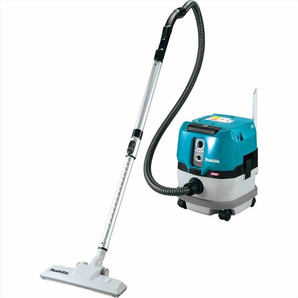 There is increasing awareness of dust extraction on job sites, and the 40V max X2 XGT® Brushless 2.1 Gallon Wet/Dry Dust Extractor/Vacuum is a cordless solution for a range of applications. It functions in both wet and dry applications, with 148 CFM and 92” water lift for efficient performance. The GCV01 is powered by one 40V XGT battery, but the 2-battery bay will accommodate a second 40V battery for extended run time. It has a variable speed control dial for power run time and management. The vacuum includes a 1-1/4” x 5-1/2” anti-static hose, crevice nozzle with on-board storage, and an aluminum telescoping wand that adjusts to user height and collapses for storage. The wand includes a universal floor nozzle for performance in both janitorial-sanitation and construction job site applications. Convenience features include four rotating wheels for 360-degree mobility, rear casters with locking levers, and a large rubber bumper to help prevent damage to the work environment. Quick-release metal latches provide easy access for the removal and disposal of debris. It features IPX4 weather-resistant construction for durability and long life. XGT® is a system of equipment, tools, batteries, and chargers utilizing 40v max lithium-ion batteries. XGT® is engineered to deliver high power to take on high-demand applications, allowing users to completely transition to a cordless job site. XGT® is equipped with advanced brushless motor engineering, intelligent digital communication, and superior durability features to outpower, outsmart and outlast the rest.