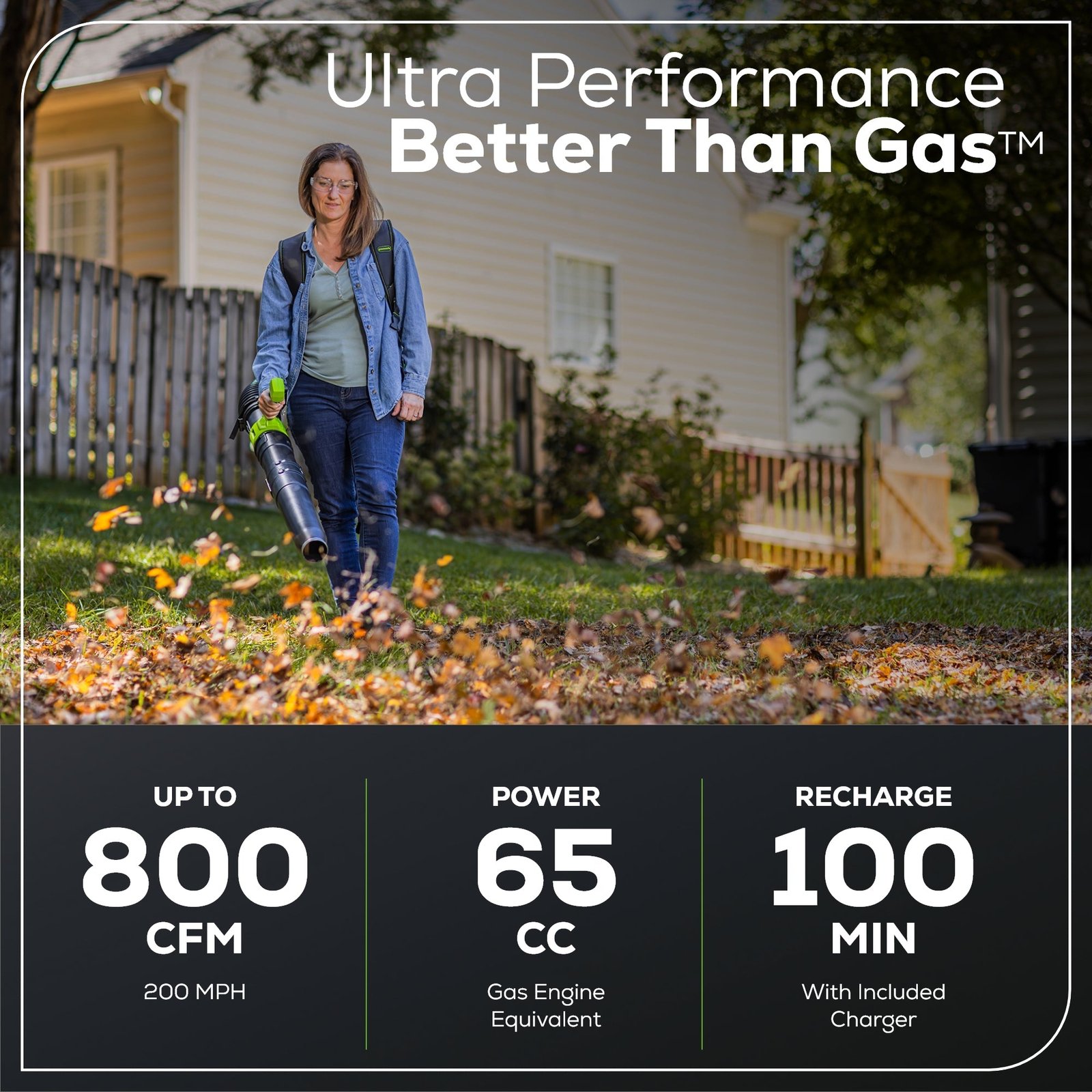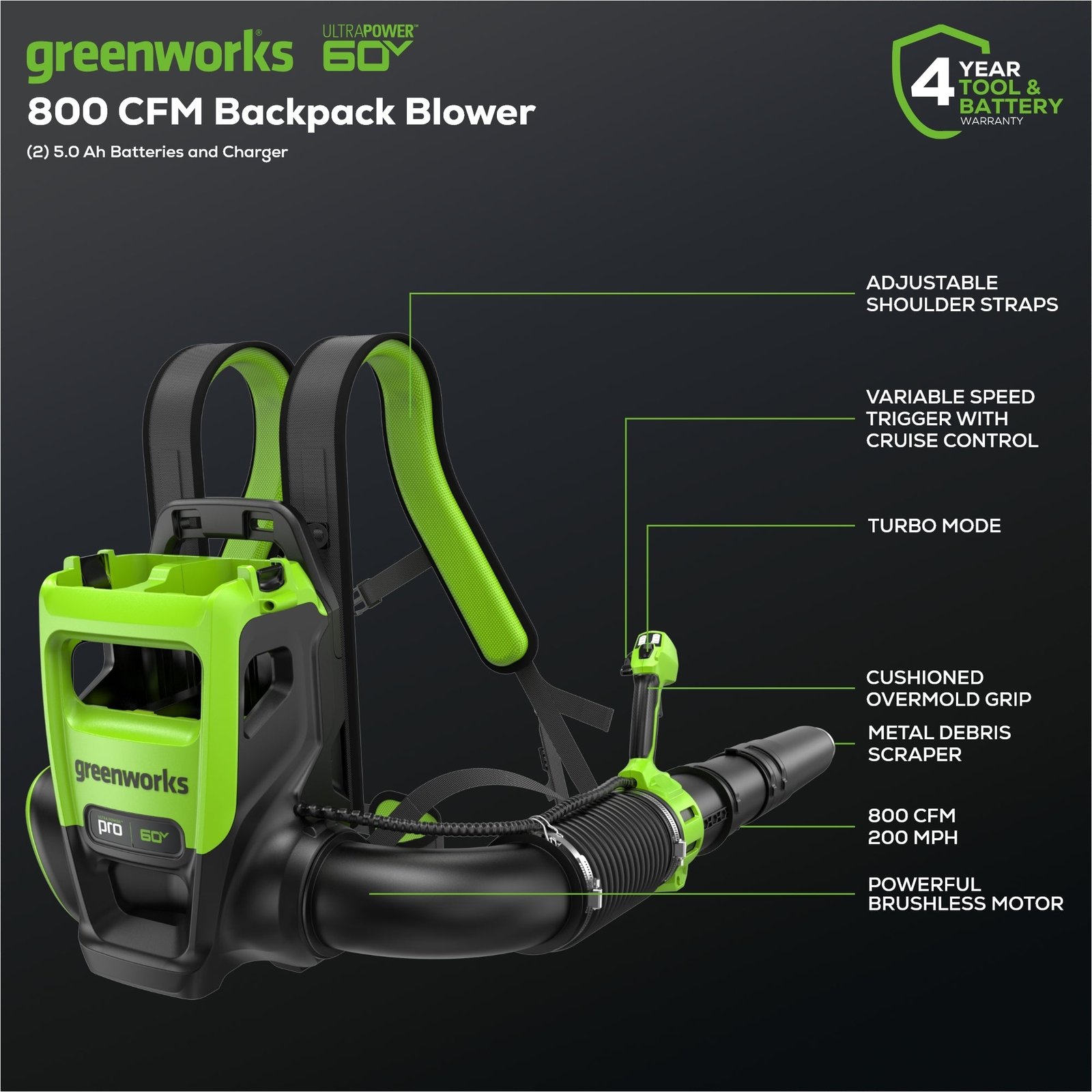 Pro 60V 800CFM Cordless Battery Dual Port Backpack Blower w/ (2) 5.0Ah Batteries & Dual Port Charger