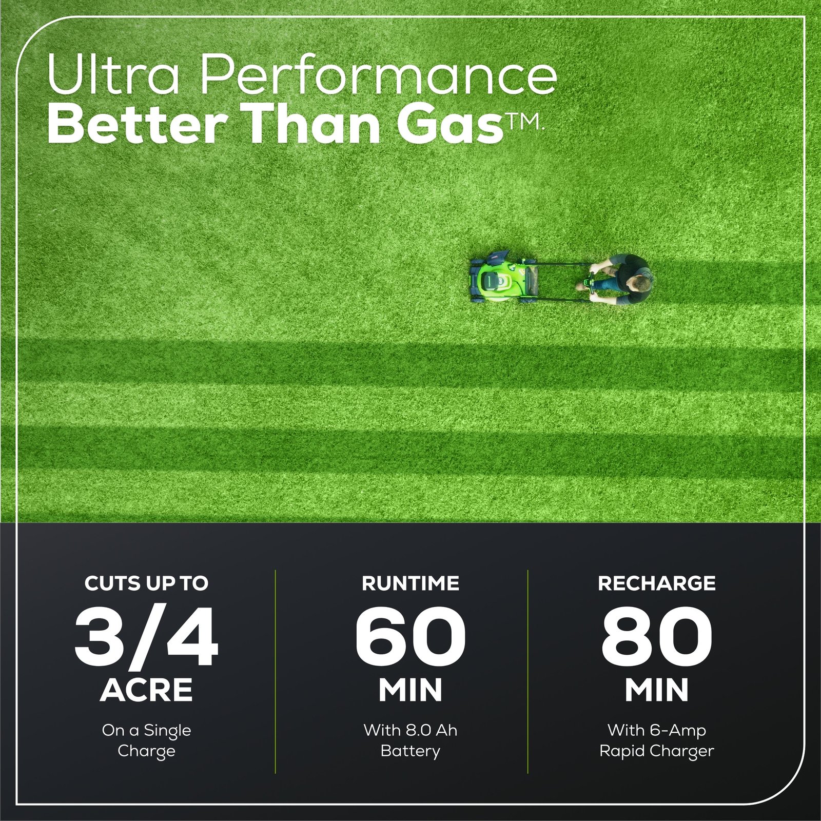 - Power 75+ Tools with any Greenworks 60V Battery