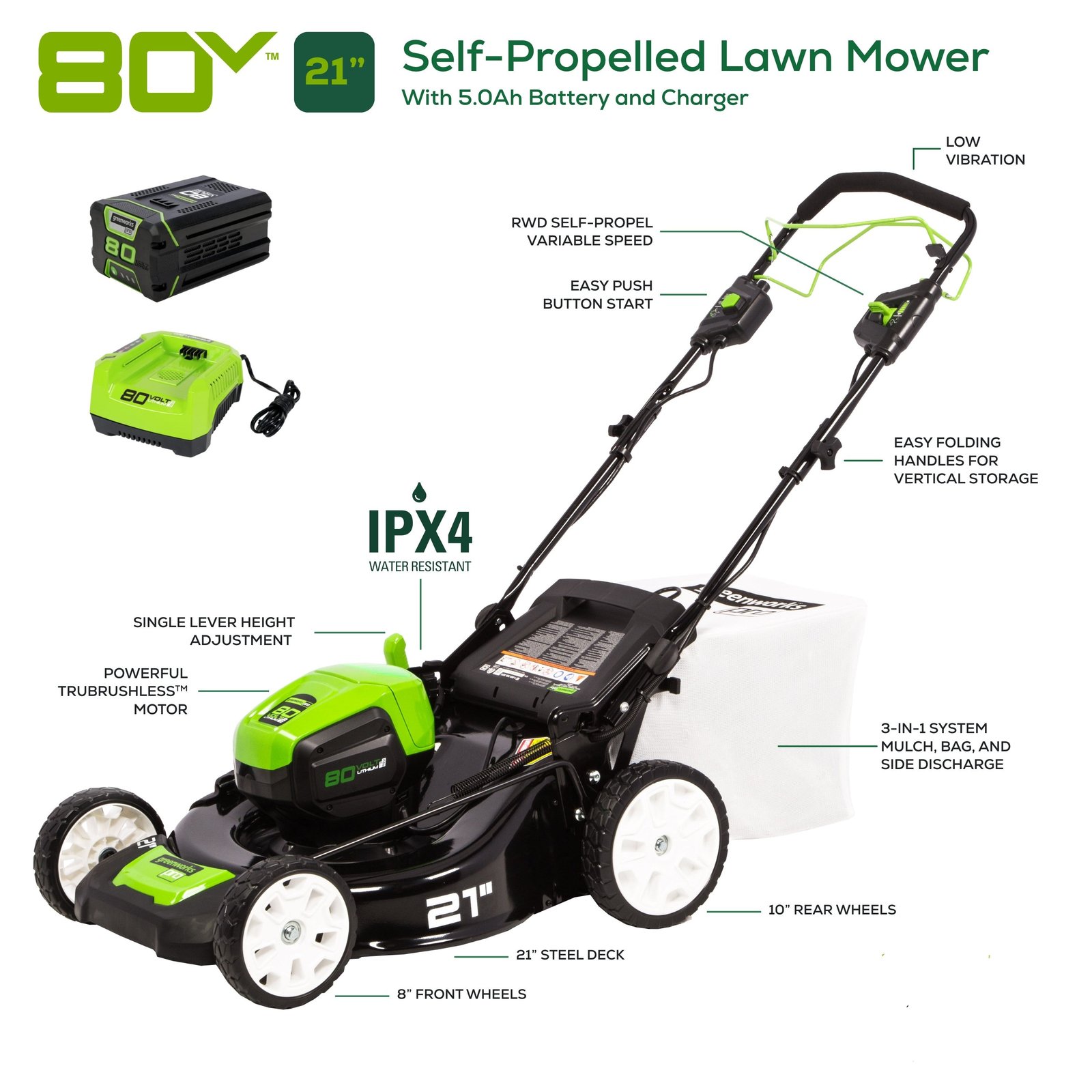 - Power 75+ Tools with any Greenworks 80V Battery