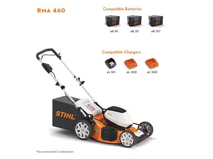 The STIHL RMA 460 is the first lawn mower in the AK Series, giving AK battery users a full line of products to complete tasks around their lawn. This lawn mower is compatible with the AK 20 or AK 30 battery, providing homeowners with performance options based on yard size. With a steel mowing deck of 19”, the RMA 460 is highly maneuverable for quick and efficient grass cutting with each pass. Its 15.85 gallon grass catcher allows for more grass cutting and less stopping, while the handle bar is easily adjustable for user comfort. The RMA 460 is great for small to medium-sized yards under a half-acre and can also be used as a mulching mower.