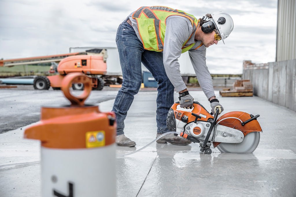 Abrasive cutting just got more cutting edge. STIHL introduces another industry first with the TS 500i STIHL Cutquik® cut-off machine – the first handheld outdoor power tool to offer an electronically controlled fuel-injection system. This system increases power and performance over 15% while remaining lightweight and well-balanced. The fuel injection system makes starting easier and more reliable by eliminating the choke. Just set the switch to on, prime and pull.